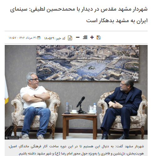 شهردار مشهد مقدس در دیدار با محمدحسین لطیفی: سینمای ایران به مشهد بدهکار است+لینک خبرAdmin۱۴۰۲-۰۶-۰۱به گزارش دبیرخانه روایت شهر و به نقل از شهرآرانیوز، محمدرضا قلندرشریف امروز در دیدار ... ادامه مطلب