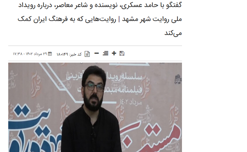 گفتگو با حامد عسکری، نویسنده و شاعر معاصر، درباره رویداد ملی روایت شهر مشهد+لینک خبرAdmin۱۴۰۲-۰۵-۳۰به گزارش دبیرخانه روایت شهر و به نقل از شهرآرا، حامد عسکری که برای برگزاری ... ادامه مطلب
