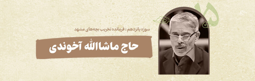 حاج ماشاالله آخوندی یکی از گنجینه‌های کمیاب دفاع مقدس است. فرمانده تخریب بچه‌های مشهد، اسرار ناگفته زیادی از آن سال‌های طلایی در سینه دارد. شاید کمتر کسی را بتوان بین بچه هیاتی‌های مشهد پیدا کرد که نام «حاج ماشاالله آخوندی» را نشنیده باشد. مردی که نظم و ساماندهی در هیات عزاداری را به عنوان یک اصل خدشه ناپذیر می‌داند و در دوره‌ای که خیلی‌ها به کار بی‌نظم و آشفته کار «هیئتی» می‌گویند، مجموعه‌ای بر پایه نظم و ترتیب ایجاد کرد که حتی افرادی که بنا به اقتضای کار، فعالیت و سکونت و … نتوانسته‌اند با آن همراهی کنند، نقطه قوت کار حاجی را نظم و ترتیب آن می‌دانند.