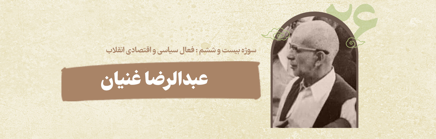 عبدالرضا غنیان در اواخر دوره حکومت رضاخان، در زمانی که مراسم سوگواری امام حسین (ع) ممنوع بود، همراه بسیاری از جوانان مذهبی در بیرون شهر مشهد عزای حسینی برپا کرده و مداح مجالس مخفی بود. درست همان زمانی که غنیان به‌دلیل برخورد خشن حکومت، مخفیانه مرثیه امام مظلومش را می‌سرود. از سال ۱۳۵۰ شهرت خدمات فرهنگی و اجتماعی غنیان همه خراسان را فرا می‌گیرد، مدیریت او آن‌چنان مقبول عام و خاص بود که بلافاصله بعد از وقوع زلزله اسفراین و سیل قوچان همه گروه‌ها برای همکارى با غنیان، به ستاد او روى آوردند، در واقع غنیان بانى ستاد امام خمینى (ره) در خراسان و زلزله شهریور ۱۳۵۷ طبس بود.
